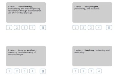 지적재산권 이슈와 미리 다 알면 의미가 떨어지기 때문에 아래 다 소개할 수는 없지만, 누군가 이걸 이해하는 사람이 있다면 자신이 매일같이 interaction하는 가족이나, 직장 팀 동료와 같이 한번 해보시는걸 정말 추천해드리고 싶습니다. 그리고 저도 9월초에 잠시 한국에 가서 대학생 후배님들과 이것을 비롯해서 몇가지 워크샵을 해볼 생각입니다. 나중에 자세히 제 Asian Leadership Academy에 대해 쓰고 관심있으신 분의 참여를 받겠지만 일단 이번글에선 제가 생각하는 Leadership Academy의 네 축(Self Awareness – creating your life story. Find your value… / Entrepreneurship / Leadership / Communication) 중 첫번째 Self Awareness의 가장 중요한 부분, 자신의 가치 알아가기 방법에 대해 소개해보겠습니다.