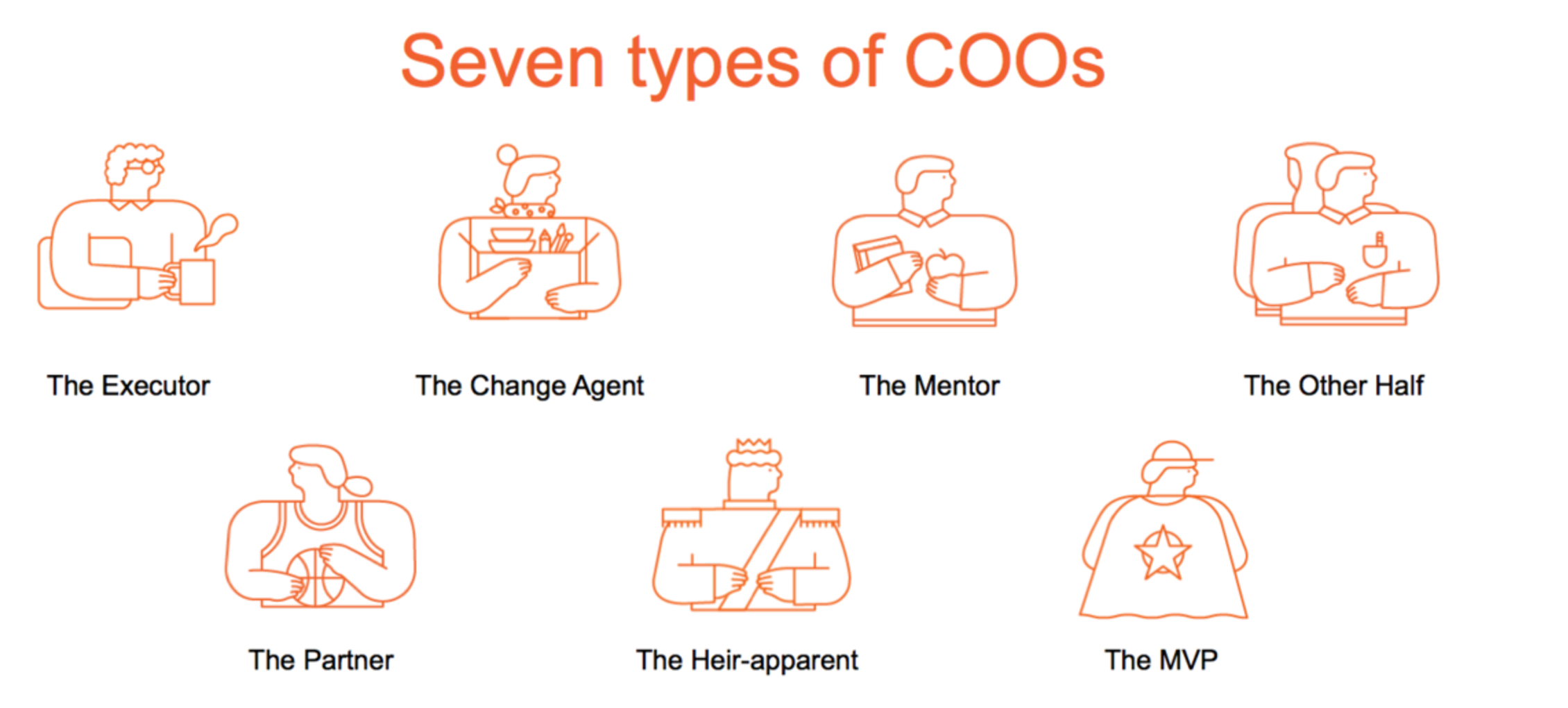 Operations Head, 최고 운영책임자. 페이스북의 쉐릴 샌드버그 COO 때문에, 그리고 애플의 팀 쿡이 COO 였다가 CEO가 되었기에 좀더 친숙하지만 그래도 도무지 들을때마다 뭐하는 역할인지, 심지어는 회사의 오퍼레이션 헤드로서 일하고 있는 나로서도 헷갈리는 부분이 너무 많다. Head of Operations의 역할에 대한 유일한 진실은 그 역할이 매 회사마다 다르다는 이야기가 있을 정도로. 이 글에서는 위 사진에도 있지만 총 7가지나 다른 타입의 Head of operations 이 있을 수 있다고 이야기 하고 있다.