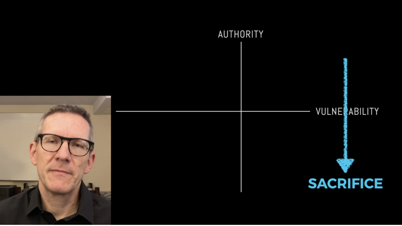 이 매우 아이러닉하고도 카운터 컬쳐 (counter culture)한 메세지를 가장 잘 설명하는 메세지 중 하나로 아래 앤디 크런치의 “권위” 와 “버너러빌리티(Vulnerability)” 의 2×2 의 두 축을 소개한다. 앤디 크런치는, 이 2×2 에서 가장 이해할 수 없는 움직임은, 권위와 힘을 가졌던 사람이 (1사분면) 자발적으로 권위를 버리고 희생하는 4사분면으로의 이동이라며, 역사상 그것을 가장 완벽히 실천한 인물로 예수님을 꼽는다. 아래 영상의 1:20부터 1:28분까지의 짧은 8분의 영상이니 모두에게 권한다.