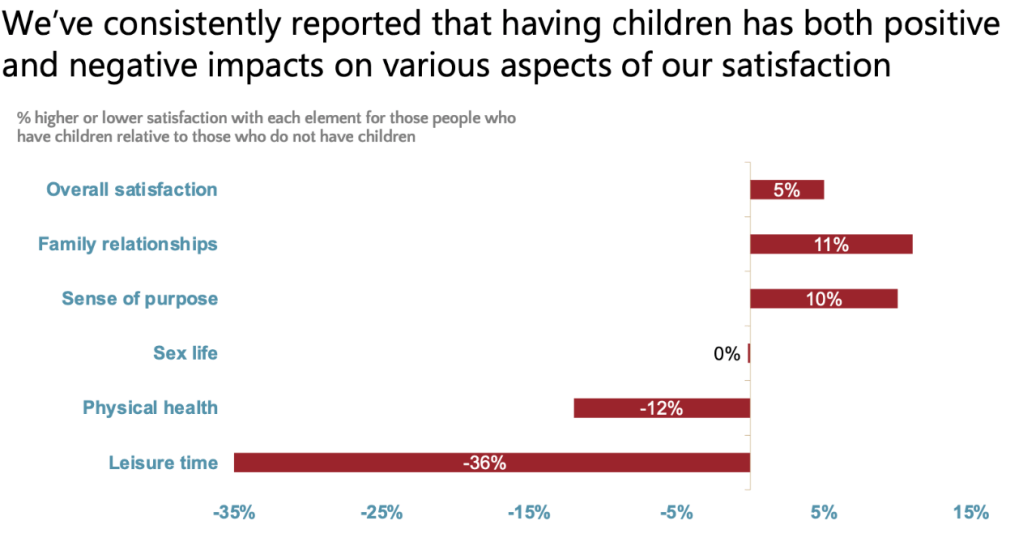 • 자녀를 가진것이 전체 만족도를 증가시키는것으로 나타남