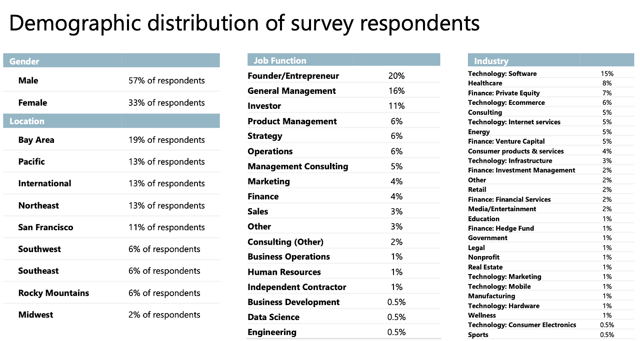 - 주로 미국에 거주하고 (87%) 테크에 종사함 (연령: 주로 30대 후반-40대 초반)
