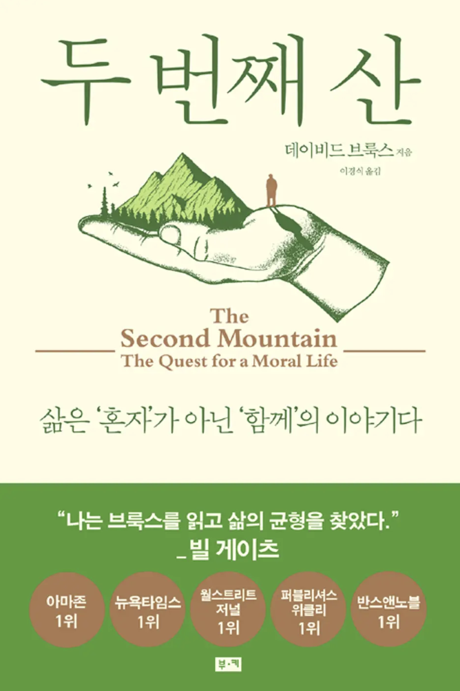 - Best book (인문교양) 두번째 산 (2nd mountain): 오랜 지인 정장환님의 소개로 접한 보물같은 책. 인생엔 스스로의 기반을 다지고 성취해가는 첫번째 산과 헌신할 무언가/누군가를 찾아내고 그것에 헌신해가는 두번째 산이 있다는게 그 줄기이다. 삶을 관통하는 영적인 지혜를 일상의 언어로 풀어낸책. 글로써 접한 데이비드 브룩스란 사람에 대해서도 반하게 되는 책이었다. 그의 삶과 영적인 여정이 너무 공감이 갖고 그걸 이렇게 풀어내는게 참 닮고싶고 매력적으로 느껴졌다.